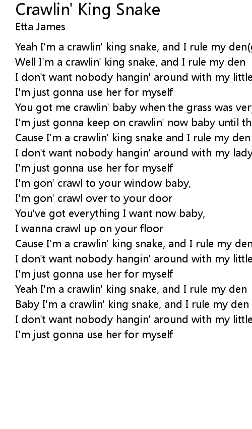 Well I'm a crawlin' king snake, and I rule my den |