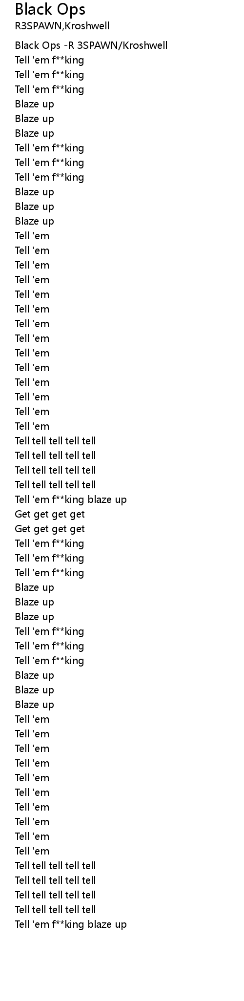 | [00:00.194] | Black Ops -R 3SPAWN/Kroshwell |