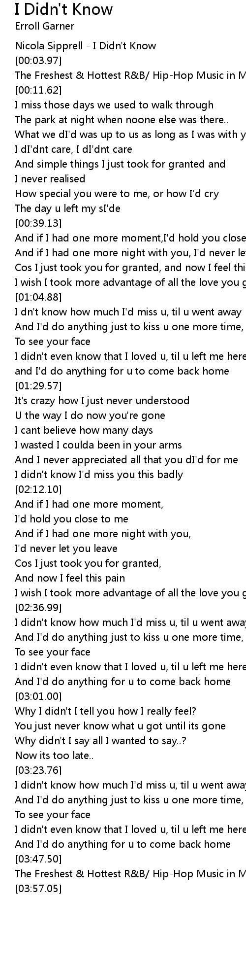 I didn't know how much I'd miss u, til u went away |