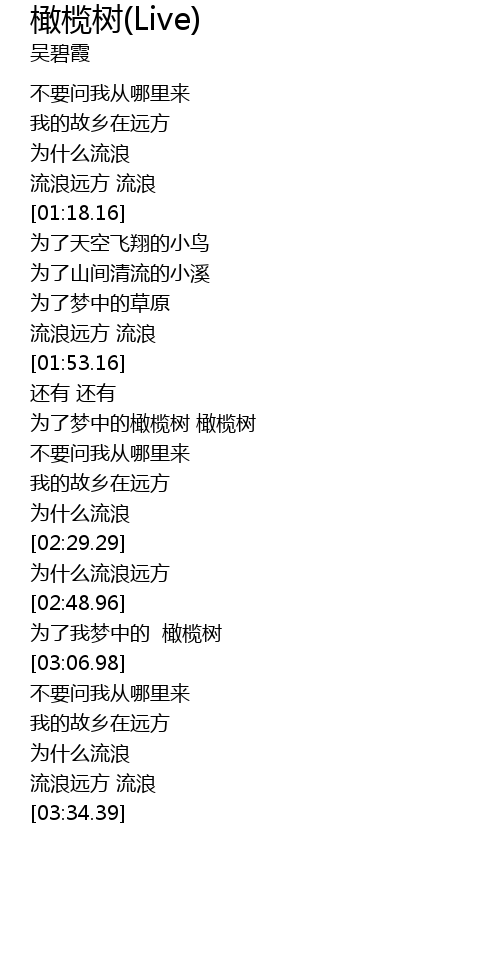 | [01:59.27] | 为了梦中的橄榄树 橄榄树 |