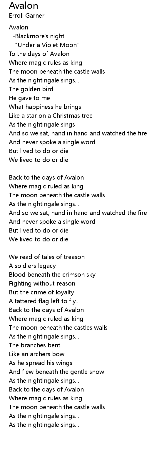 Avalon Lyrics