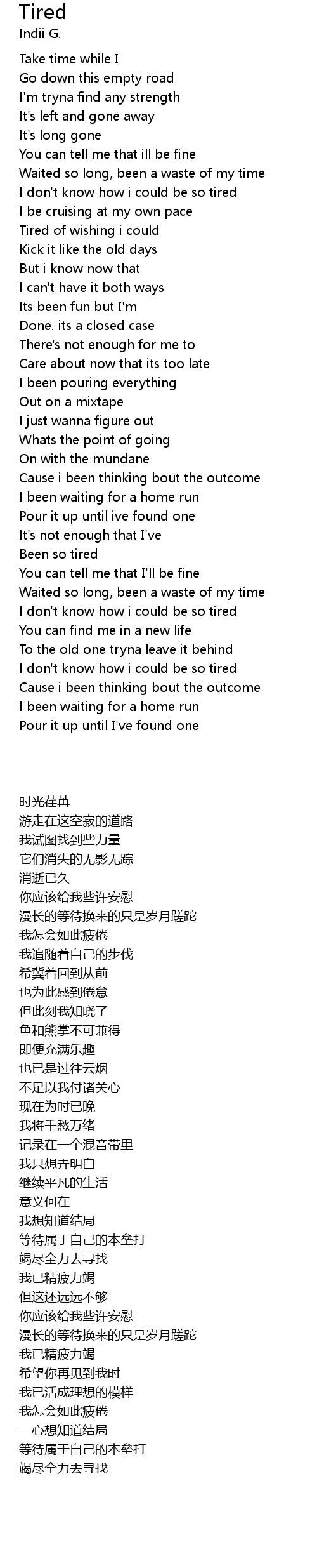 | [01:18.56] | I don't know how i could be so tired |