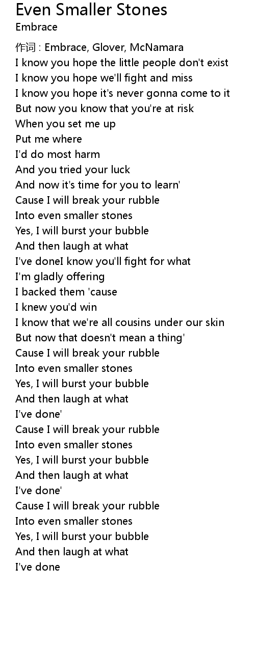 | Song | Even Smaller Stones |