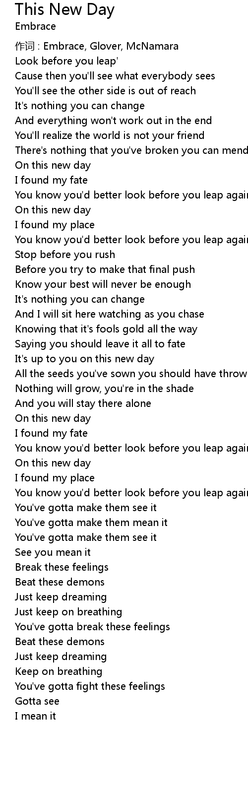 | 作词 : Embrace, Glover, McNamara | |