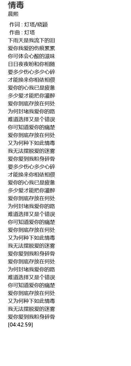 | [03:34.43] | 又为何种下如此情毒 |