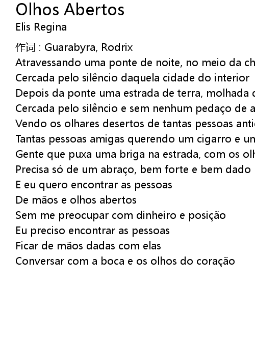 | Vendo os olhares desertos de tantas pessoas antigas | |