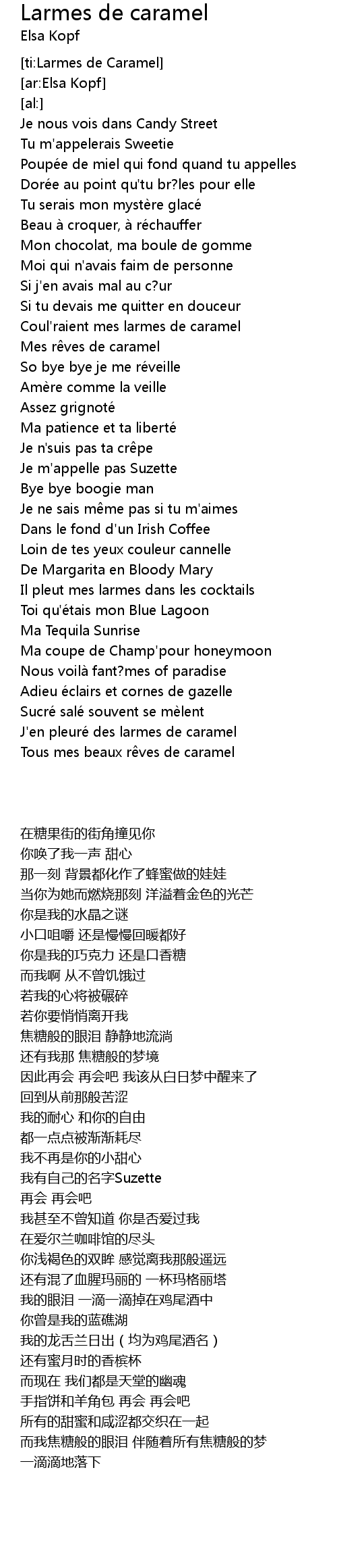 | [02:33.70] | Tous mes beaux rêves de caramel |