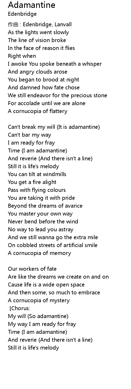 | Can' t break my will It is adamantine | |