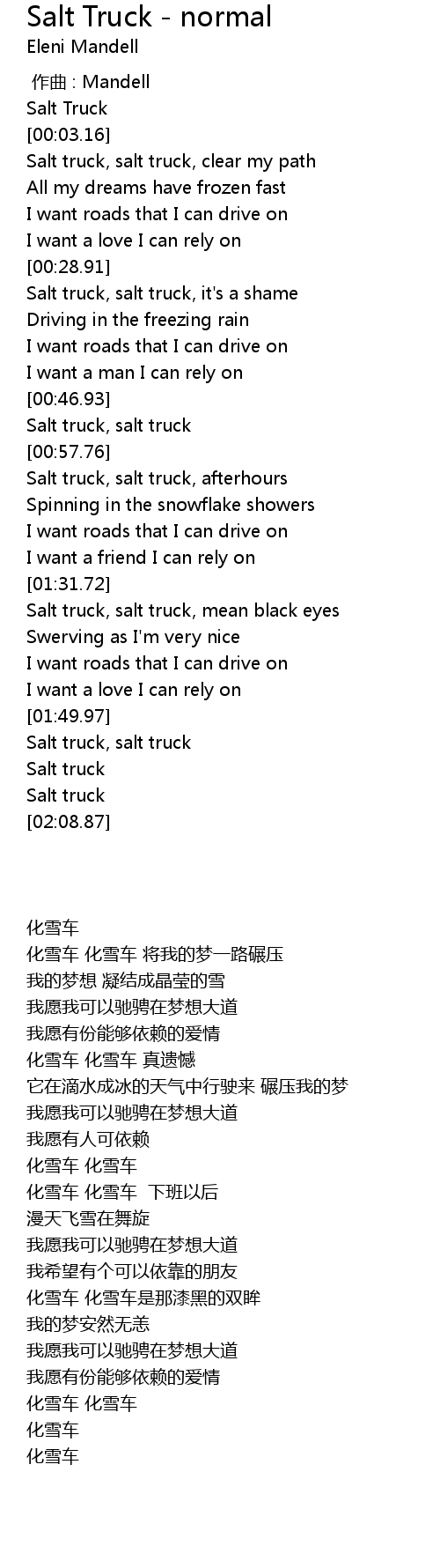 | [00:50.61] | Salt truck, salt truck |