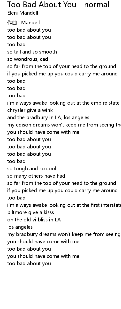| Song | Too Bad About You - normal |