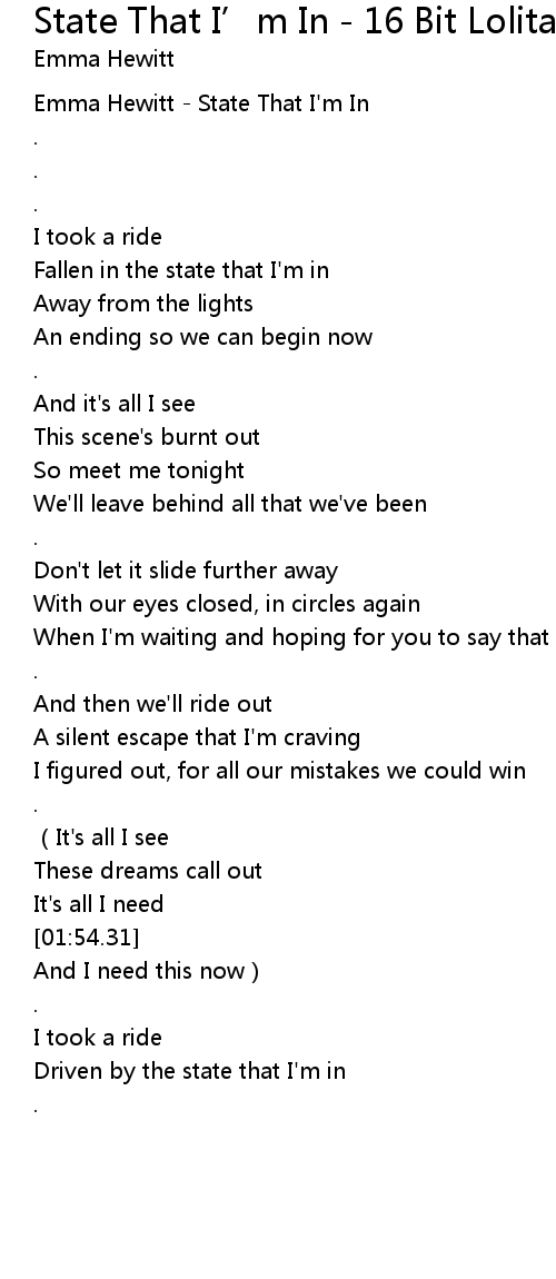 | [00:00.25] | Emma Hewitt State That I' m In |