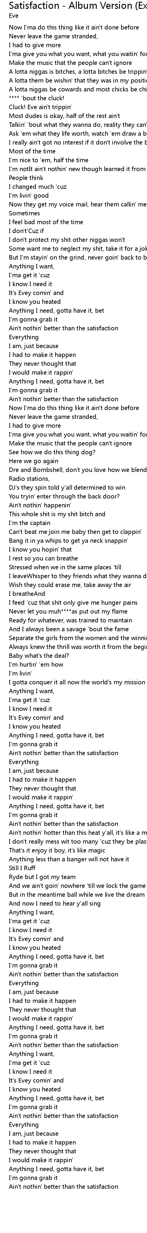 Ain't nothin' better than the satisfaction |
