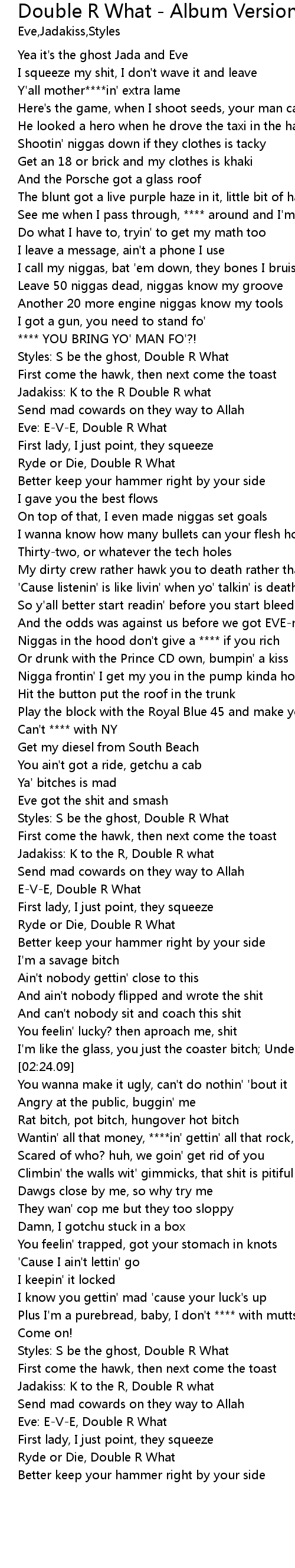 | [01:58.31] | Jadakiss: K to the R, Double R what |
