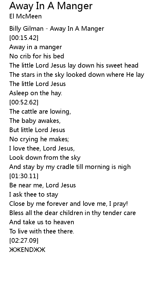 | [00:17.42] | Away in a manger |