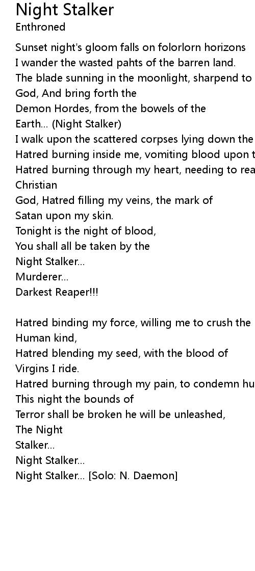 Night Stalker Lyrics