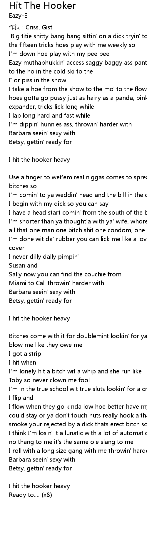 | [Eazy-E] Big titie shitty bang bang sittin' on a dick tryin' to play a pimp by the fifteen tricks hoes play with me weekly so | |