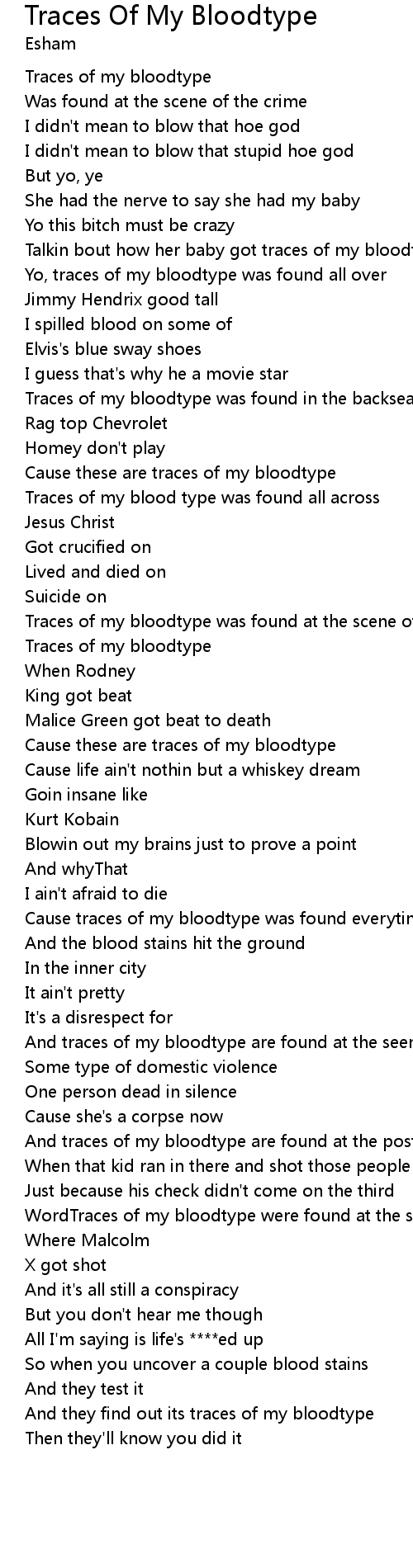 Cause these are traces of my bloodtype |