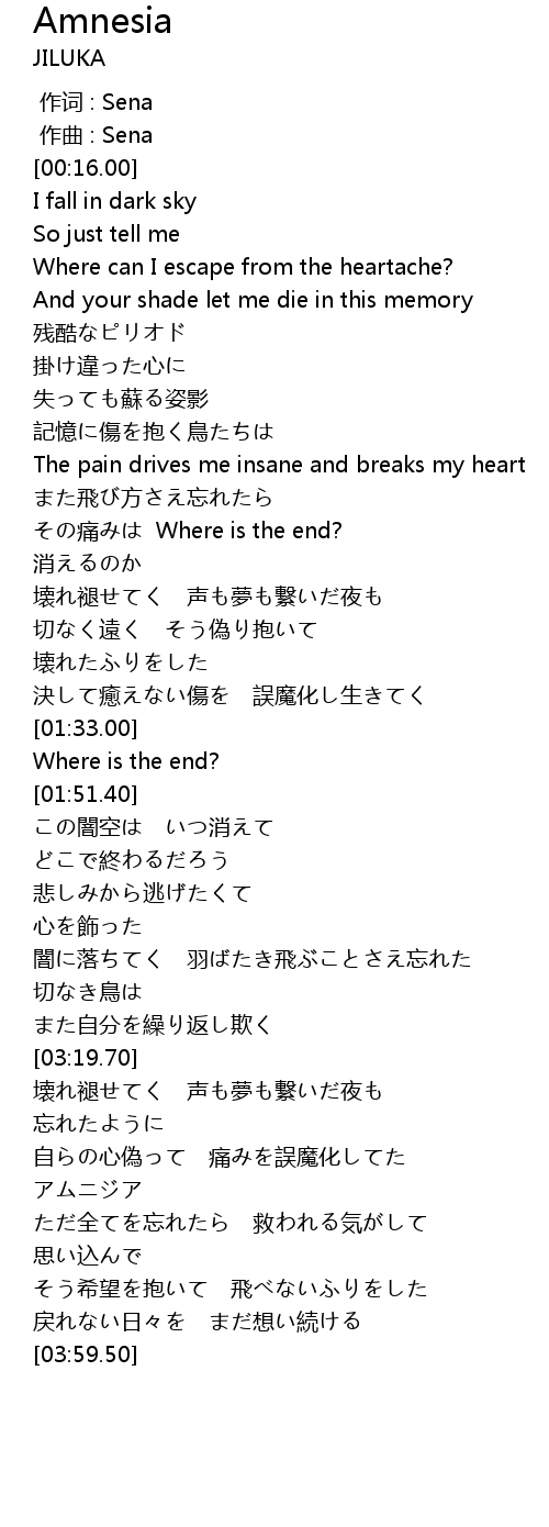 | [03:04.05] | 闇に落ちてく 羽ばたき飛ぶことさえ忘れた |