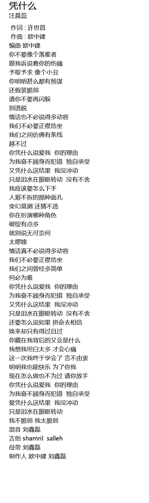 | [02:03.311] | 你凭什么说爱我 你的理由 |