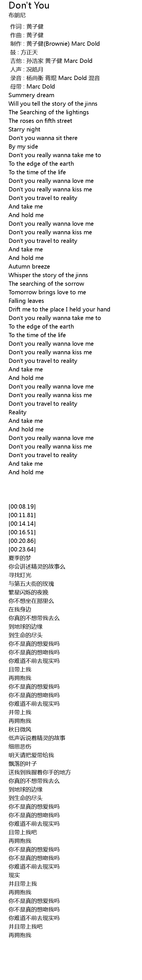 | [00:02.000] | 制作 : 黄子健(Brownie) Marc Dold |