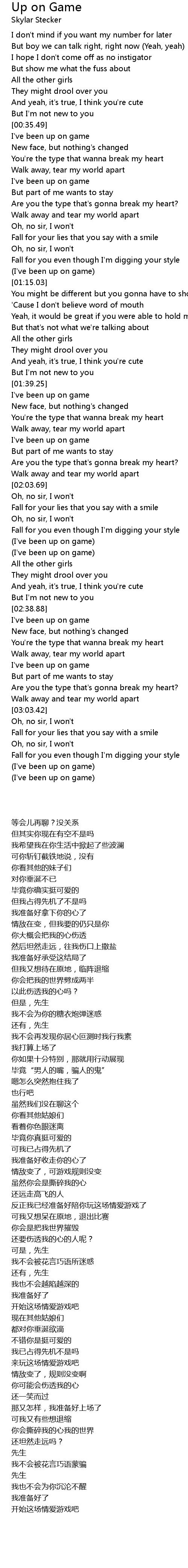 (I've been up on game) |