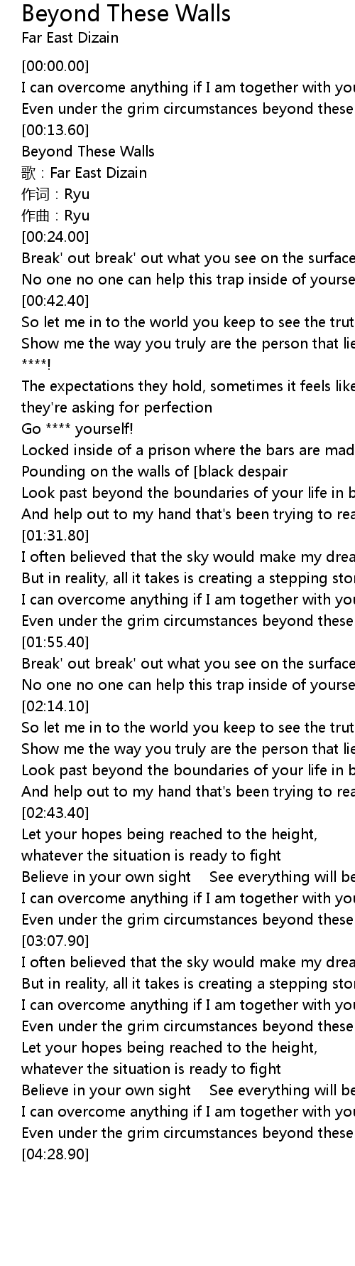 | [00:15.00] | Beyond These Walls |