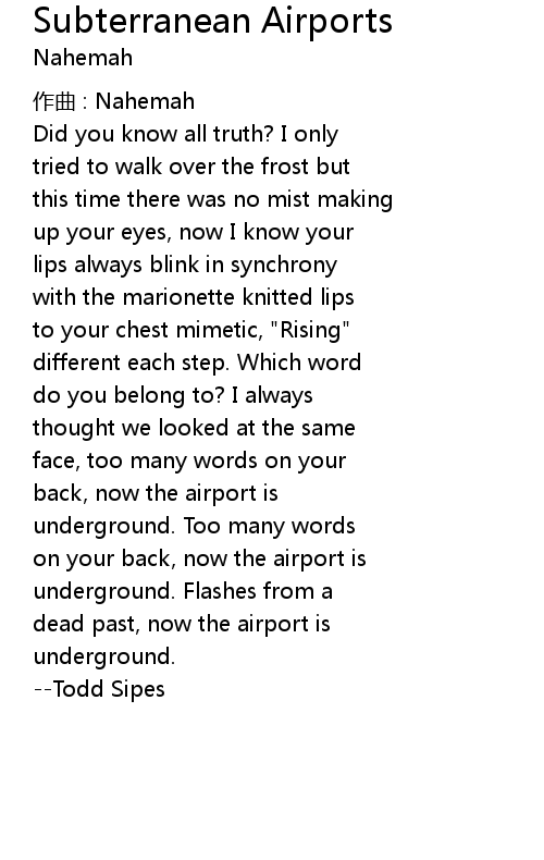 | Song | Subterranean Airports |