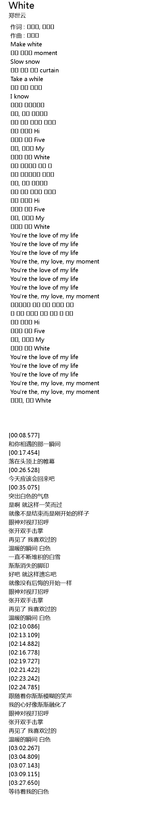 | [03:36.271] | 기다려, 나의 White |