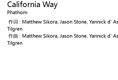 | [00:00.000] | 作词 : Matthew Sikora, Jason Stone, Yannick d' Assgnies, Anton Tilgren |