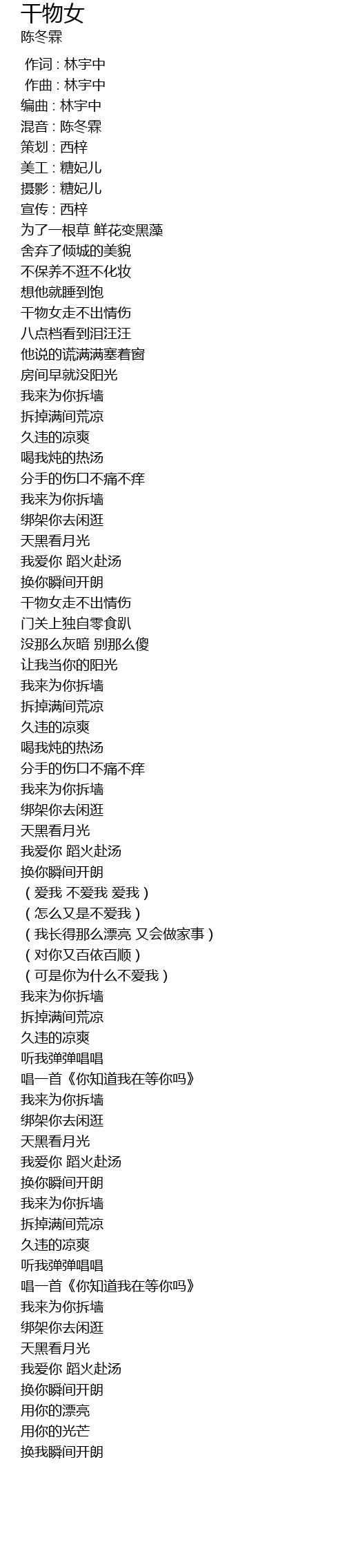 | [01:20.109] | gàn wù nǚ zǒu bù chū qíng shāng |