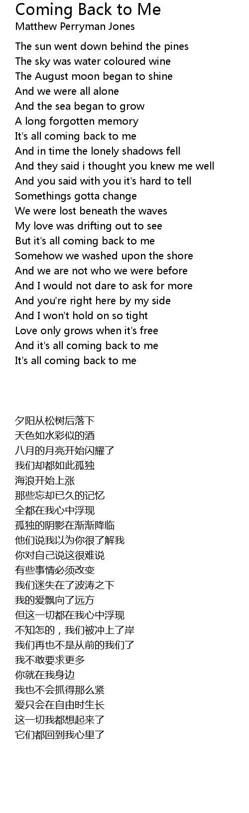 And it's all coming back to me |
