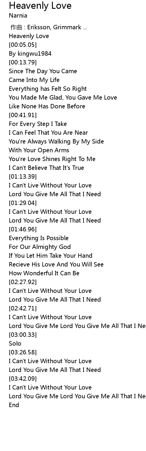 | [02:15.02] | Recieve His Love And You Will See |