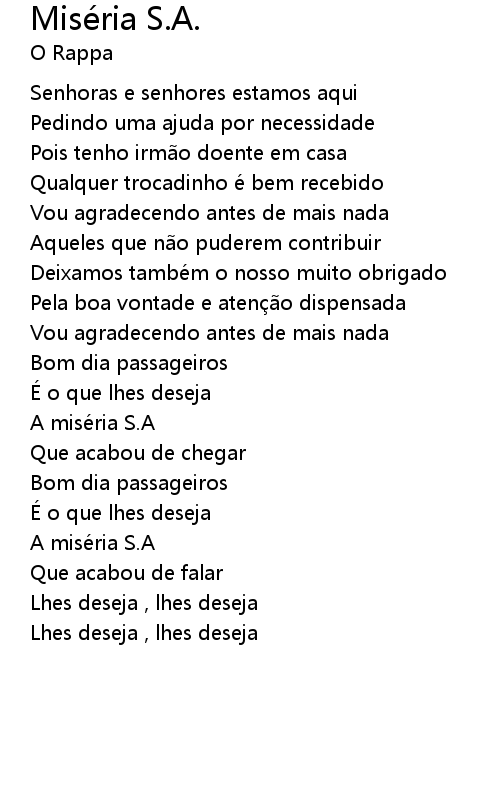 | Song | Miséria S.A. |