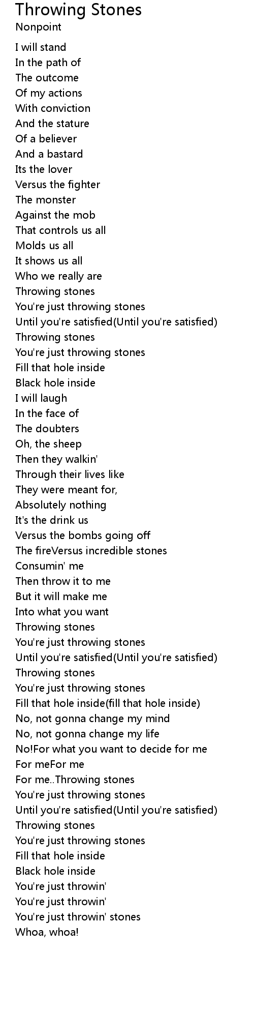 | You're just throwin' stones | |
