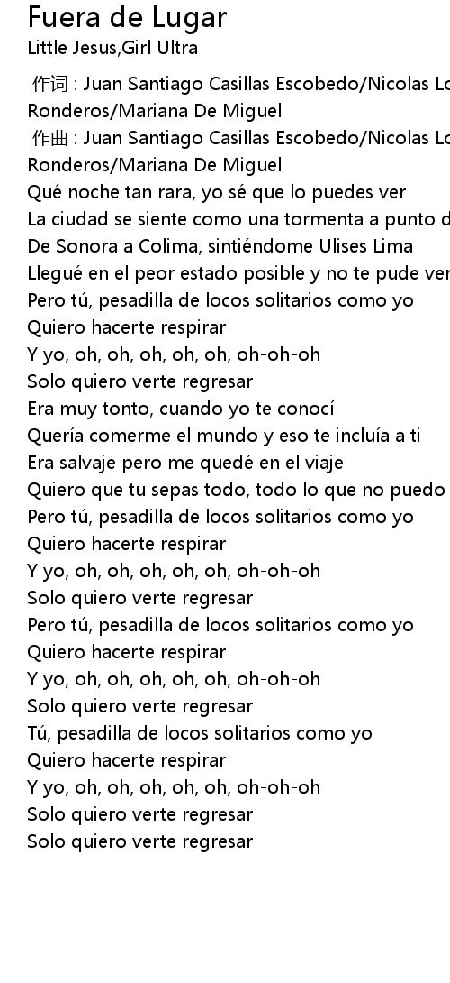 | [00:01.000] | zuo qu : Juan Santiago Casillas Escobedo Nicolas Losada Juliana Ronderos Mariana De Miguel |