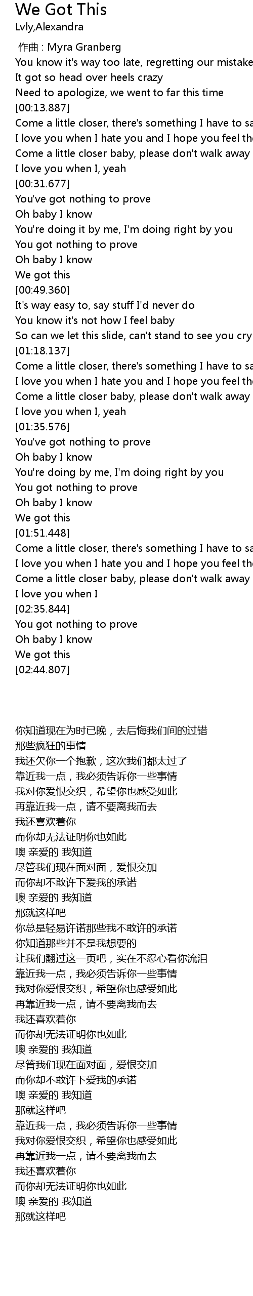 | [02:29.032] | Come a little closer baby, please don't walk away |