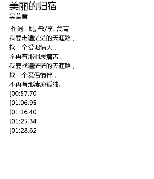 | [02:44.88][01:28.62] | 去追寻那美丽归宿。 |