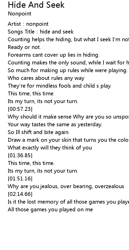 | [00:26.76] | Counting makes the only sound, while I wait for hours to be found. |
