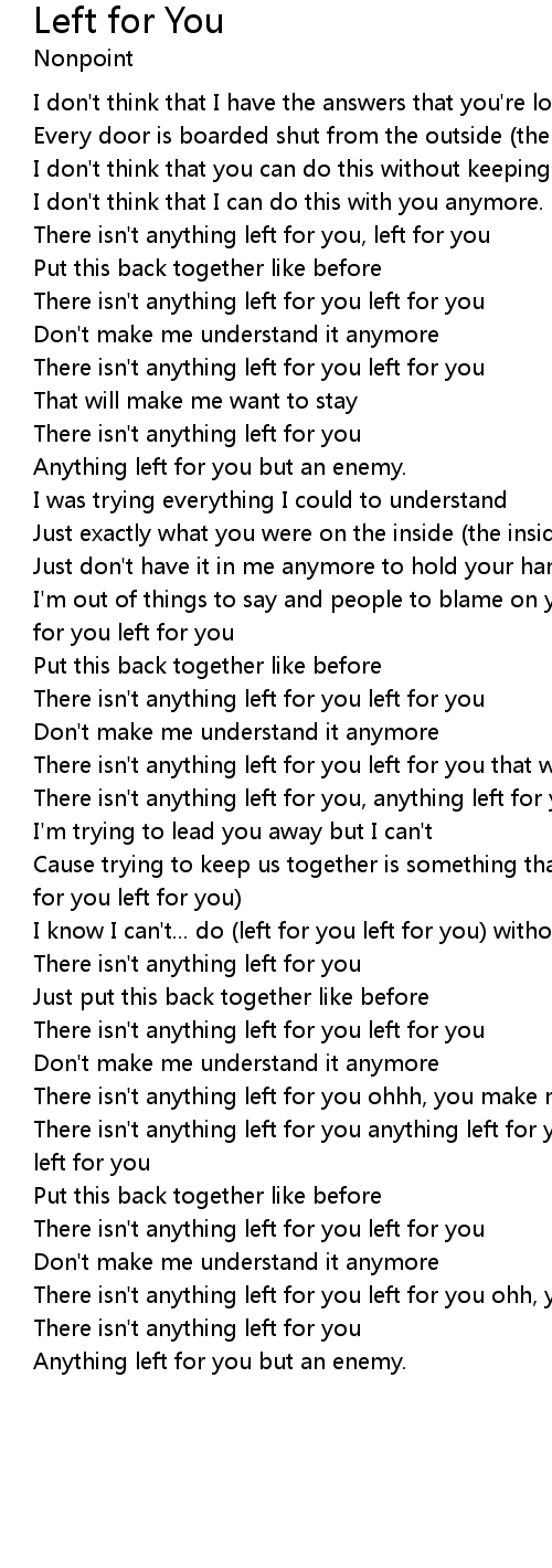 | There isn't anything left for you left for you that will make me want to stay | |