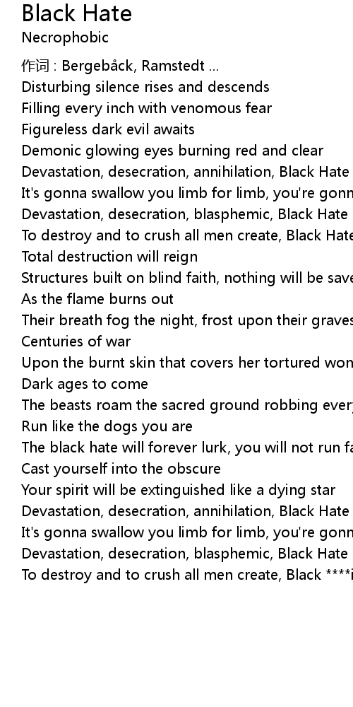 | It' s gonna swallow you limb for limb, you' re gonna drown in Black Hate | |