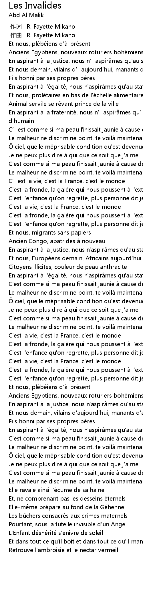 | [00:24.09] | En aspirant a la fraternite, nous n' aspir mes qu' au statut d' humain |