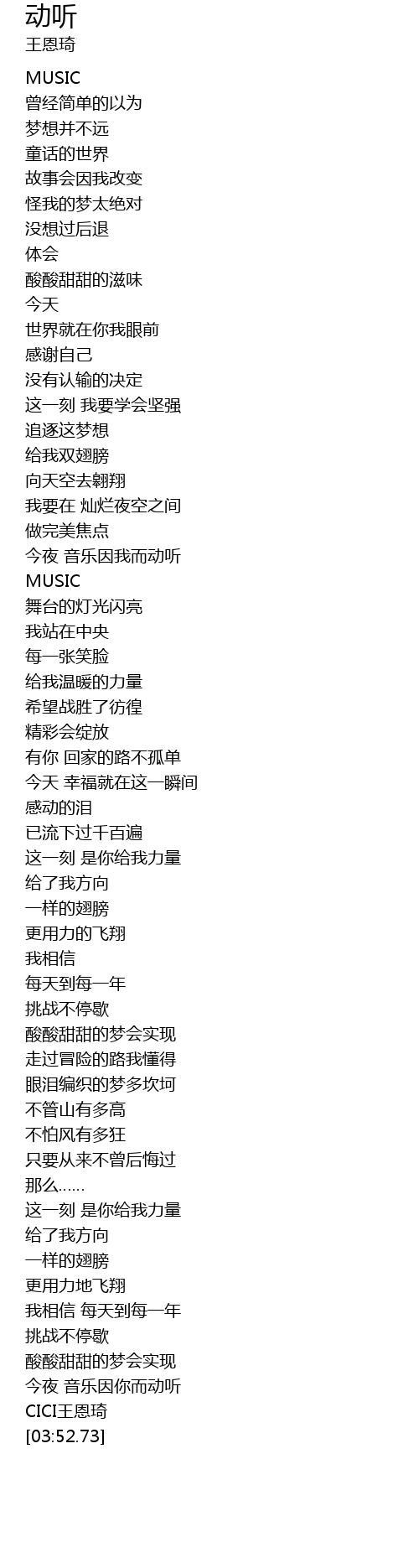 | [03:52.17] | CICI王恩琦 |