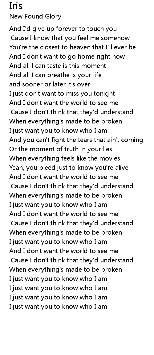 I just don't want to miss you tonight |