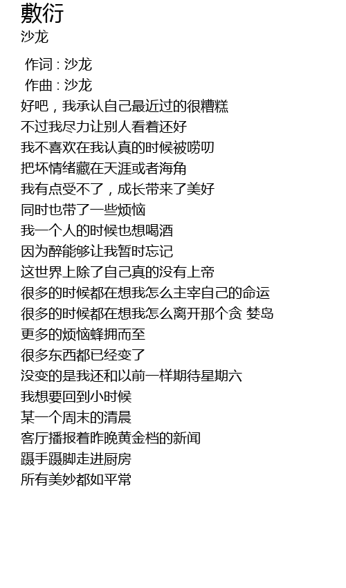 | [00:39.427] | 没变的是我还和以前一样期待星期六 |