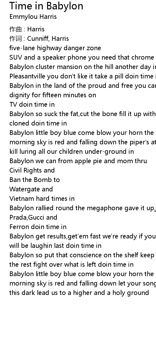 | Babylon little boy blue come blow your horn the crows are in the corn the morning sky is red and falling down let your song of healing spark a way out of this dark lead us to a higher and a holy ground |
