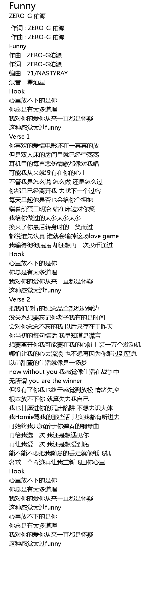 | [00:00.000] | 作词 : ZERO-G 佑源 |