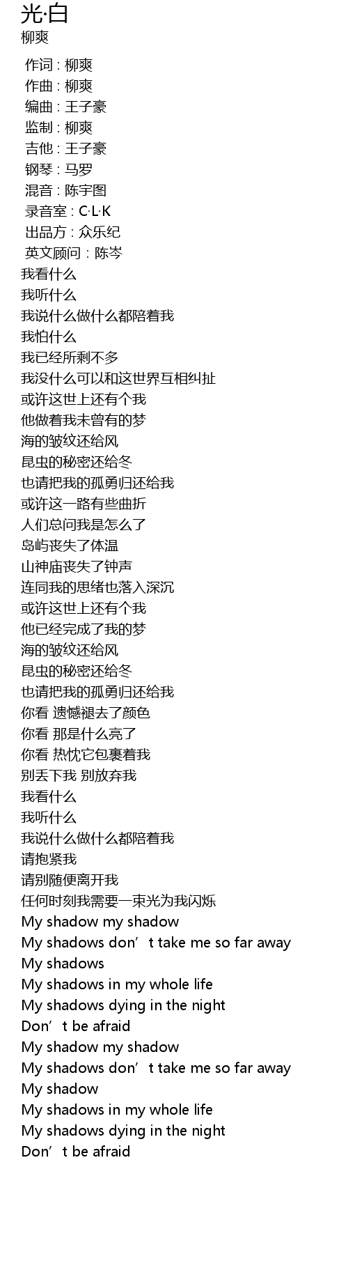 | [00:00.000] | 作词 : 柳爽 |