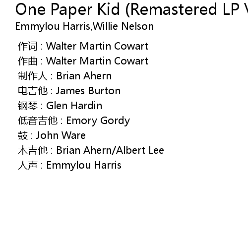 | [00:00.000] | 木吉他 : Brian Ahern/Albert Lee |