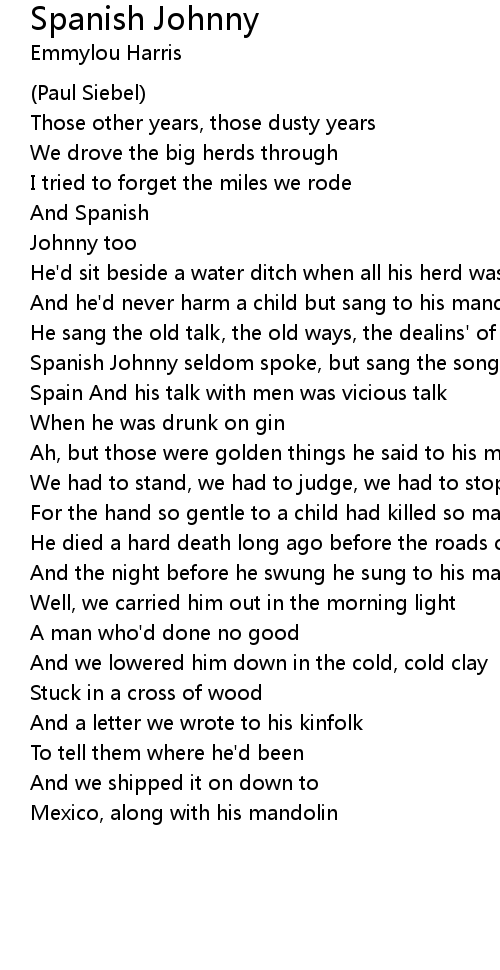 Spanish Johnny seldom spoke, but sang the songs of |