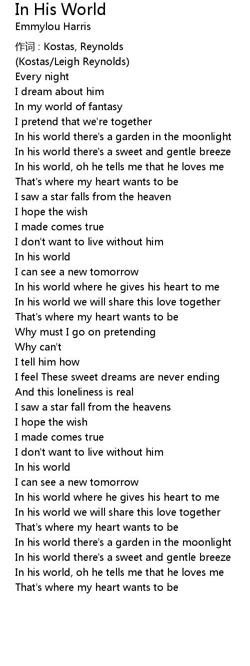 | In his world where he gives his heart to me | |